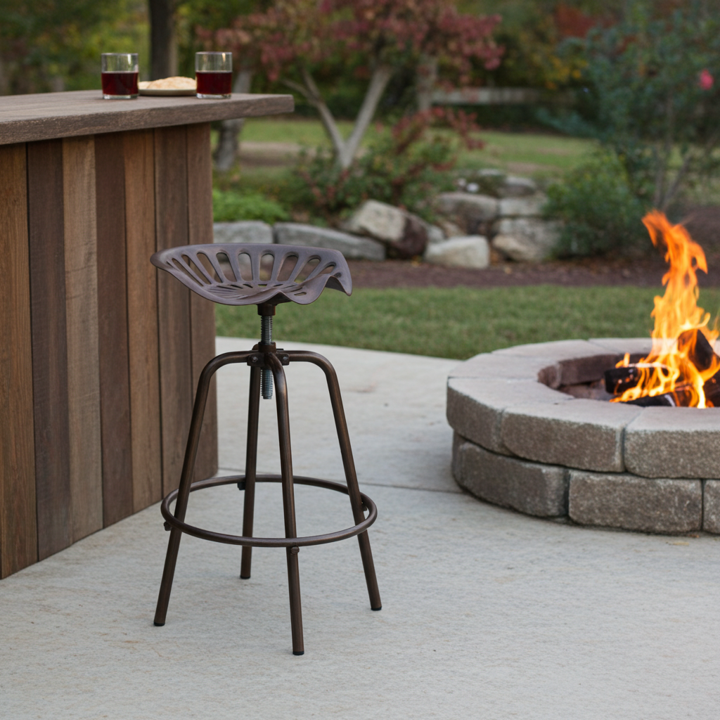 Bring vintage charm and industrial strength to your outdoor space with this farmhouse-inspired Tractor Seat Stool. Made from solid steel with a bold bronze powder-coated finish, it's built to withstand the elements and add character to your patio, porch, or garden setup.